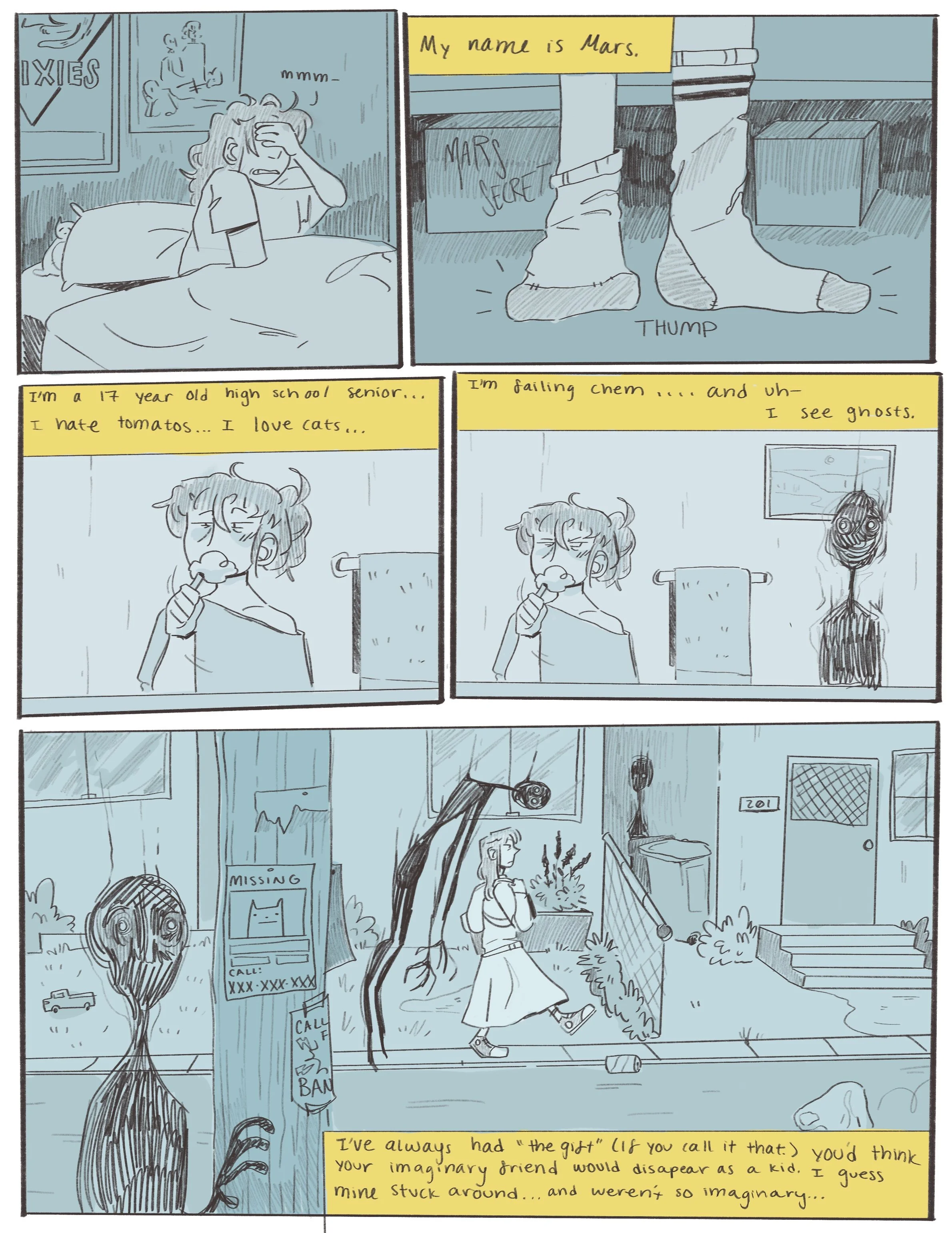 I originally wrote it as a short story for a high school English class in 2021, that was later then revamped and written again for a different college writing course in 2024. In that same class we were asked to take an assignment we had already written from the class, and turn it into an art piece. It was then the idea for the comic was born.