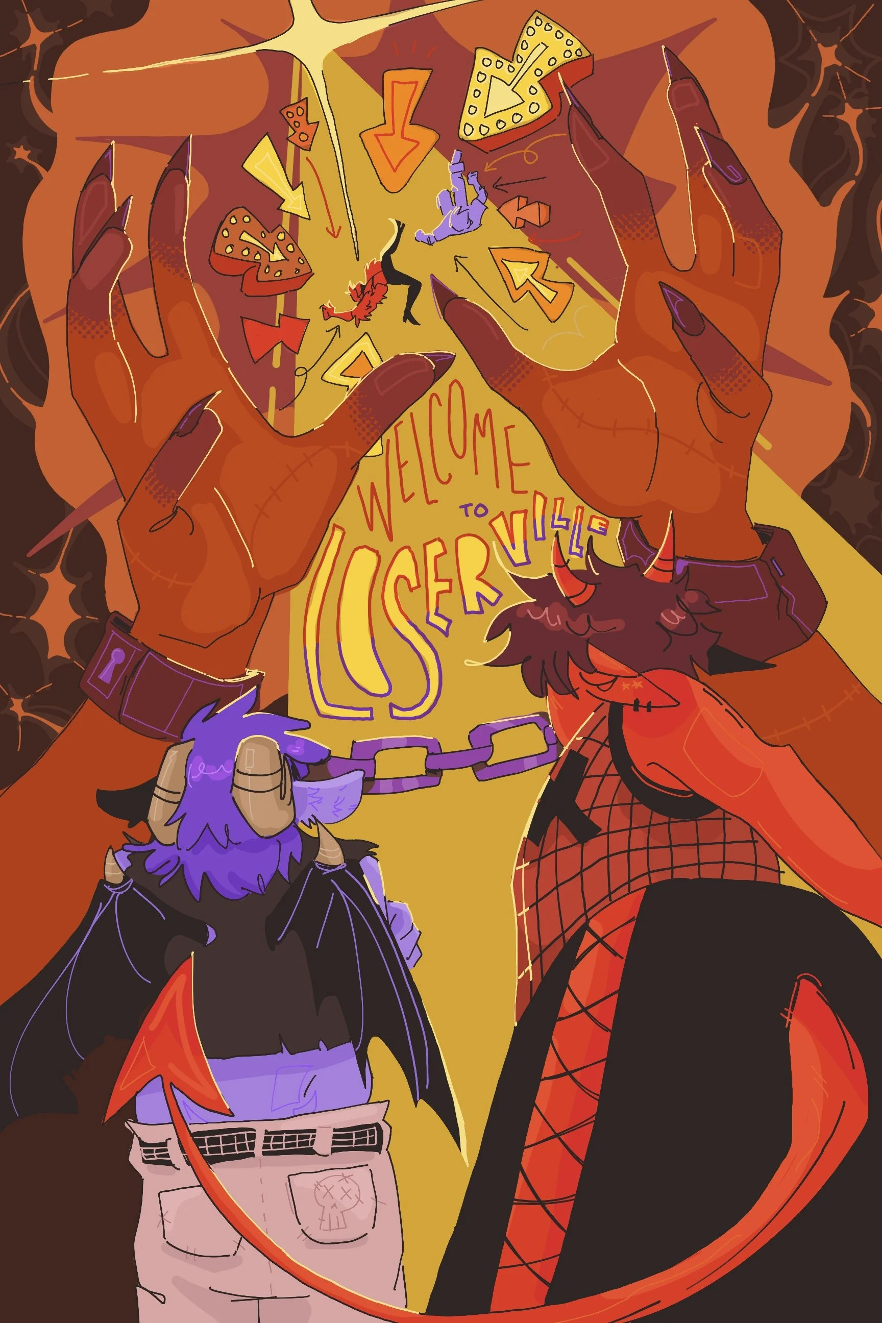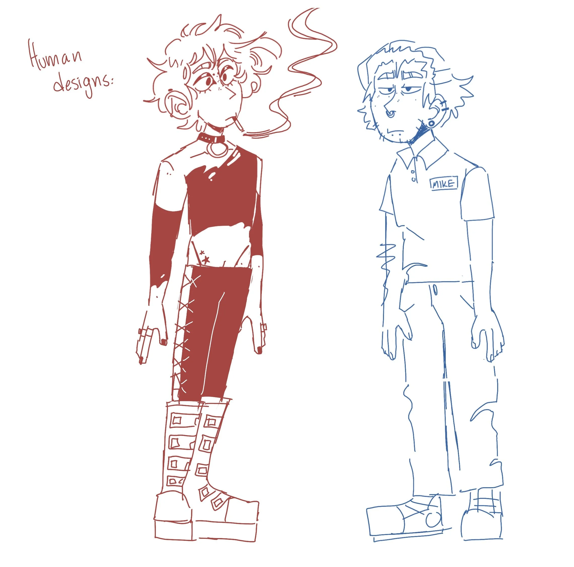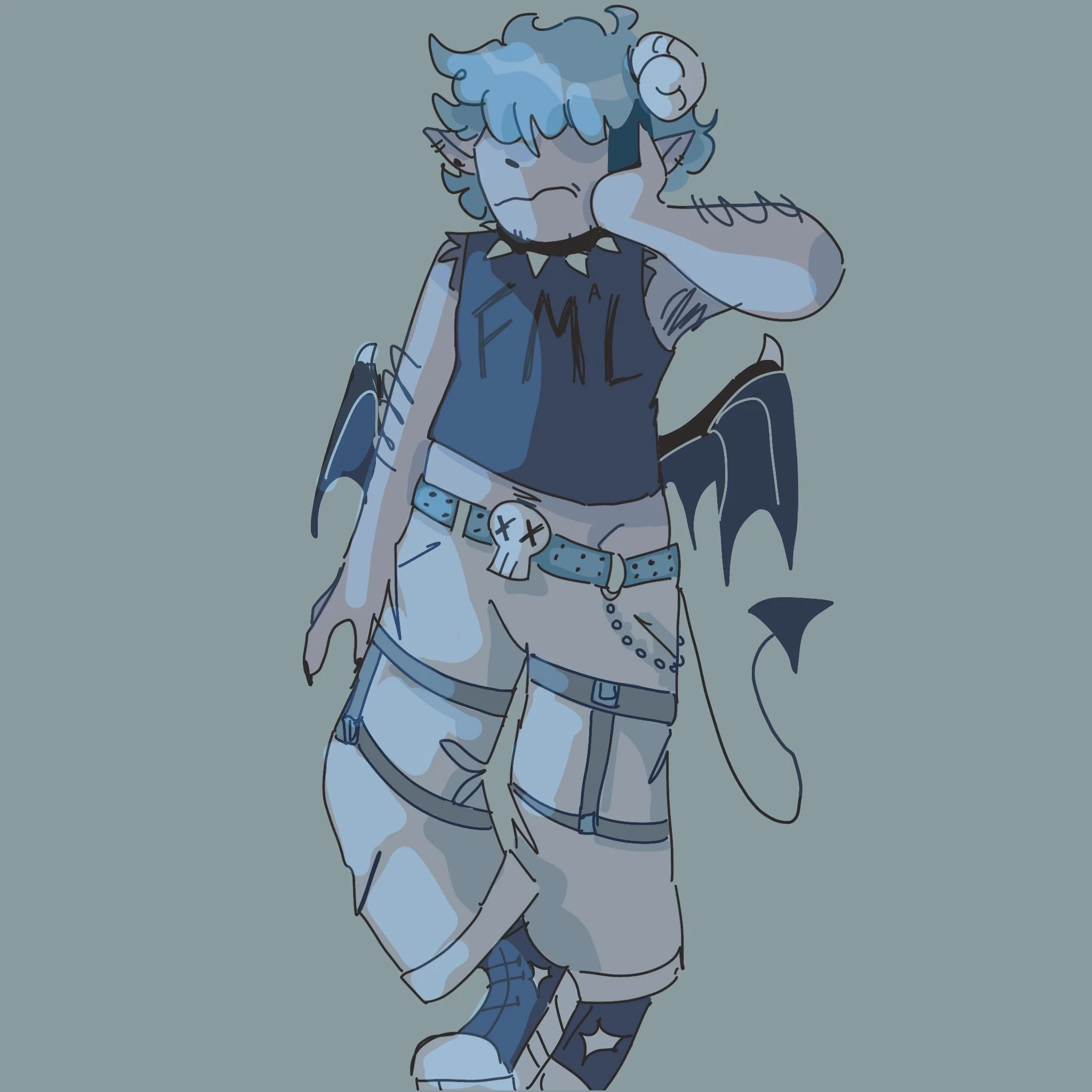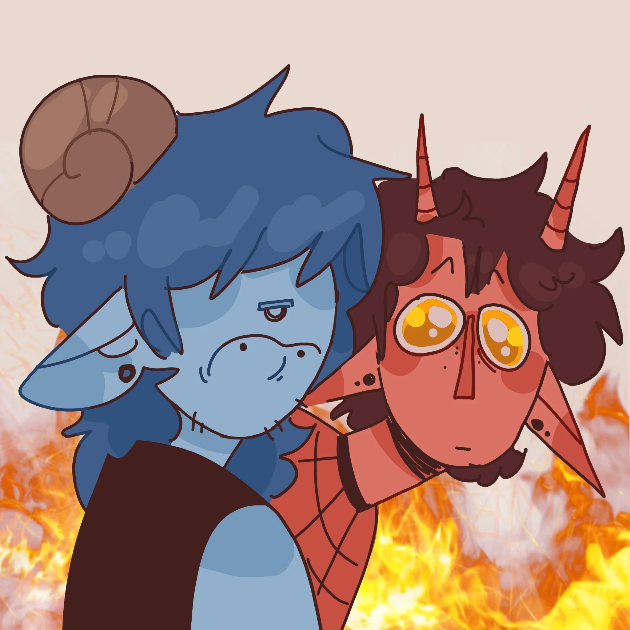 Mike is a grouchy demon constantly forced into the position of level-headedness and logic to counter his best friend’s chaotic antics. He enjoys his alone time and would rather sit at home rewatching his favorite shows then being out and about. He’s a bit of a loser, but we love him anyways.
